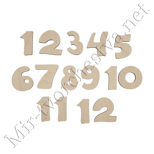 Заготовка для декорирования ВД-295 Набор "Декоративные цифры 1-12" фанера 4x4x0.3 см 0.3 см, Mr. Carving