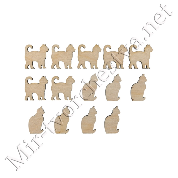 Заготовка для декорирования ВД-367 Мини-набор фанера d 2.5 см 2.5x2.3x0.3 см 0.3 см "Кошки" (1.8x2 см) 14 штук, Mr. Carving