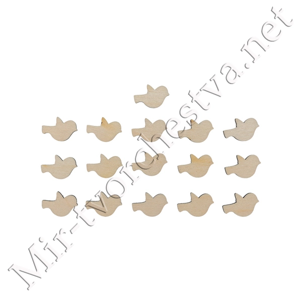 Заготовка для декорирования ВД-367 Мини-набор фанера d 2.5 см 2.5x2.3x0.3 см 0.3 см "Птички" (1.5x2.3 см) 16 штук, Mr. Carving