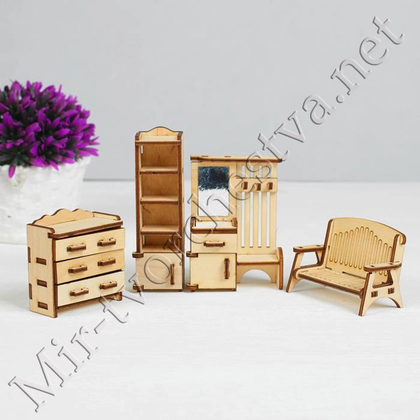Набор деревянной мебели для кукол «Прихожая», 4 предмета