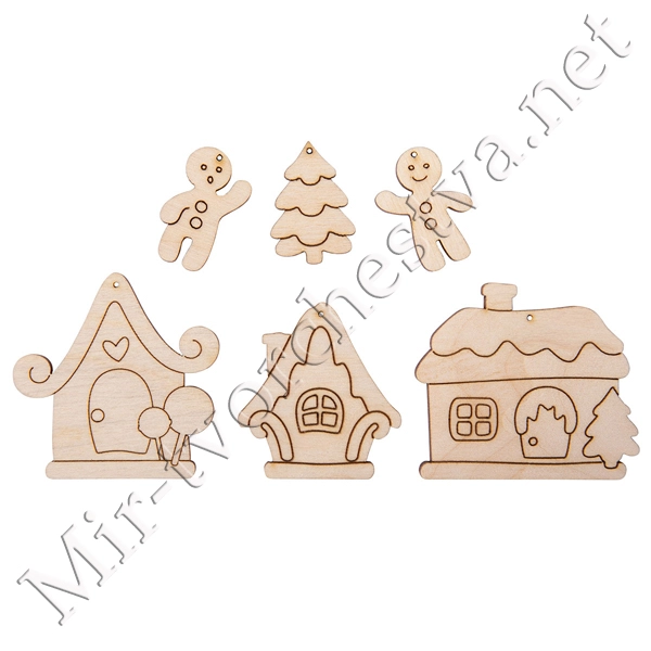 Заготовка для декорирования ВД-1131 (НГ) Мини набор "Пряничный" фанера, 5.6x5.5x0.3 см 0.3см, Mr. Carving