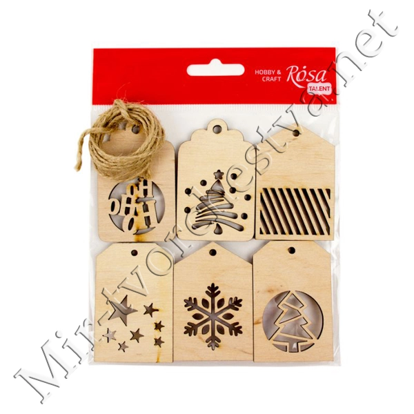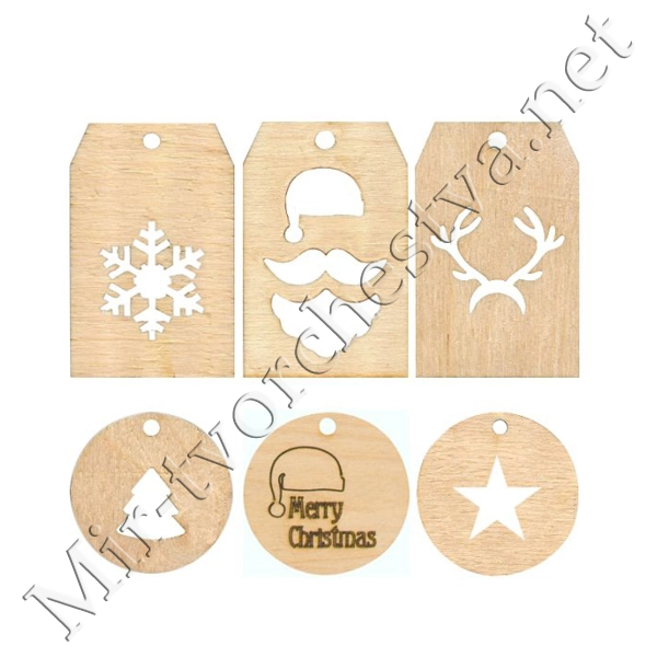 Набор заготовок „Теги новогодние“ 1, фанера, 4х6 см, 6шт, ROSA TALENT
