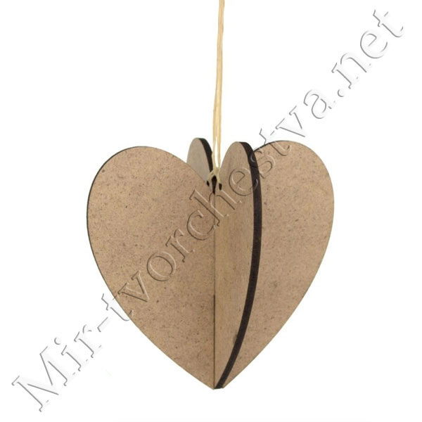 Заготовка Сердце 3D, 10х10см, ДВП, ROSA TALENT