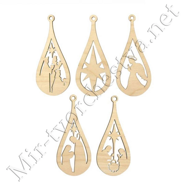 Набор новогодних игрушек для росписи и декорирования „Ассорти“, 5шт., ДВП, ROSA TALENT