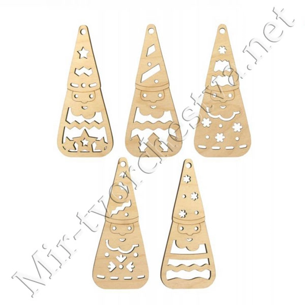 Набор заготовок „Дед Мороз“, фанера, 5,3х12 см, 5 шт, ROSA TALENT