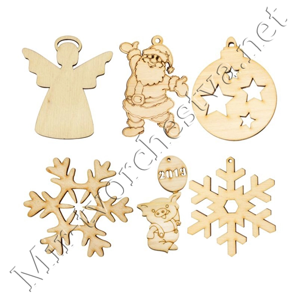 Набор заготовок «Новогодний праздник 2019», фанера, 6 шт, ROSA TALENT