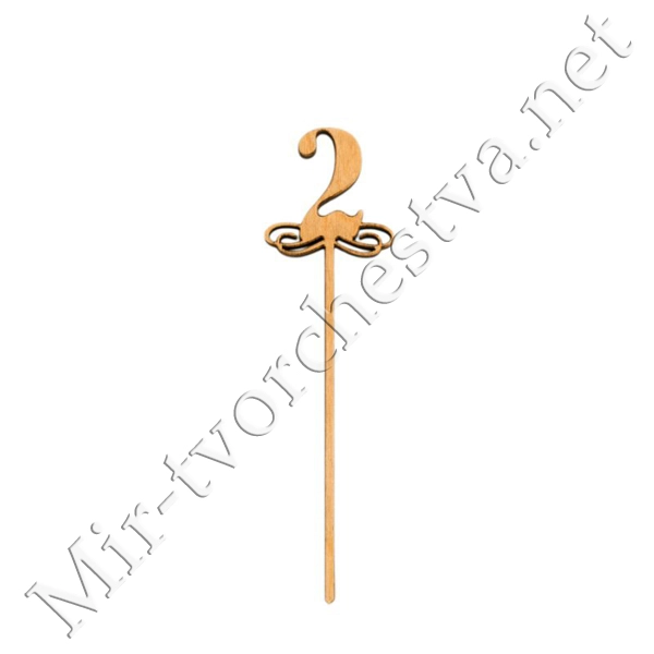 Заготовка топпер Цифра 2, фанера, 13х3,6 см, ROSA TALENT
