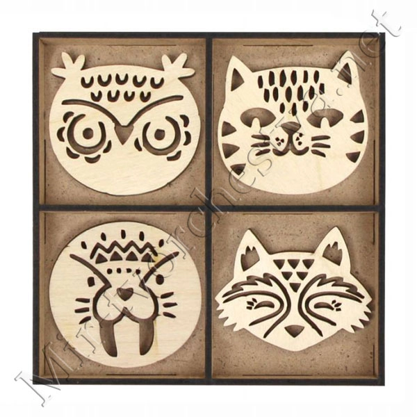 Набор заготовок „Звери“, фанера, 13х13см, 12шт, ROSA TALENT