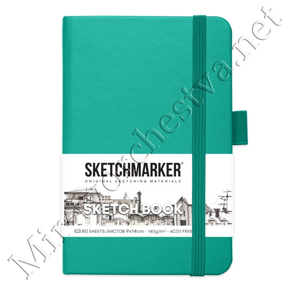 Блокнот для зарисовок 140г/кв.м 9x14см 80л твердая обложка Аквамарин, Sketchmarker
