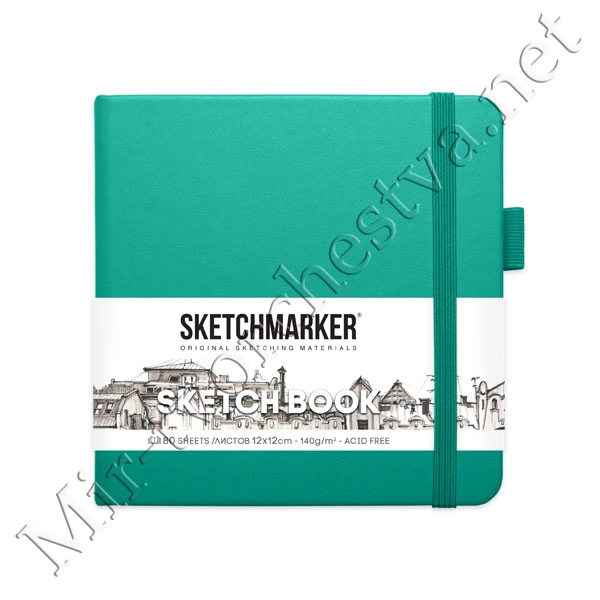 Блокнот для зарисовок 140г/кв.м 20*20cм 80л твердая обложка Аквамарин, Sketchmarker