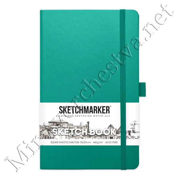 Блокнот для зарисовок 140г/кв.м 13x21см 80л твердая обложка Аквамарин, Sketchmarker
