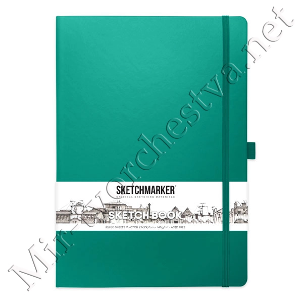 Блокнот для зарисовок 140г/кв.м 21x29.7см 80л твердая обложка Аквамарин, Sketchmarker