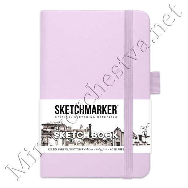 Блокнот для зарисовок 140г/кв.м 9x14см 80л твердая обложка Фиолетовый пастельный, Sketchmarker