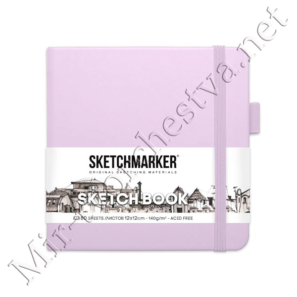 Блокнот для зарисовок 140г/кв.м 20*20cм 80л твердая обложка Фиолетовый пастельный, Sketchmarker