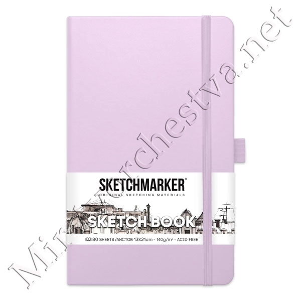 Блокнот для зарисовок 140г/кв.м 13x21см 80л твердая обложка Фиолетовый пастельный, Sketchmarker
