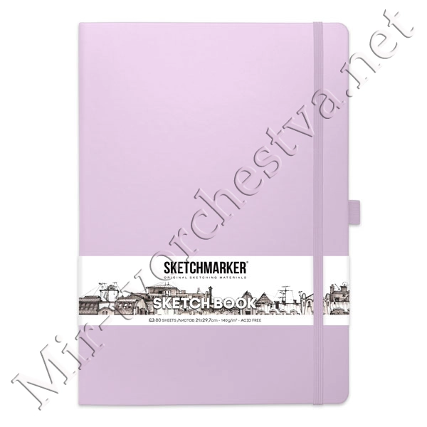 Блокнот для зарисовок 140г/кв.м 21x29.7см 80л твердая обложка Фиолетовый пастельный, Sketchmarker