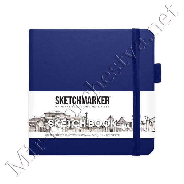 Блокнот для зарисовок 140г/кв.м 12x12см 80л твердая обложка Королевский синий, Sketchmarker