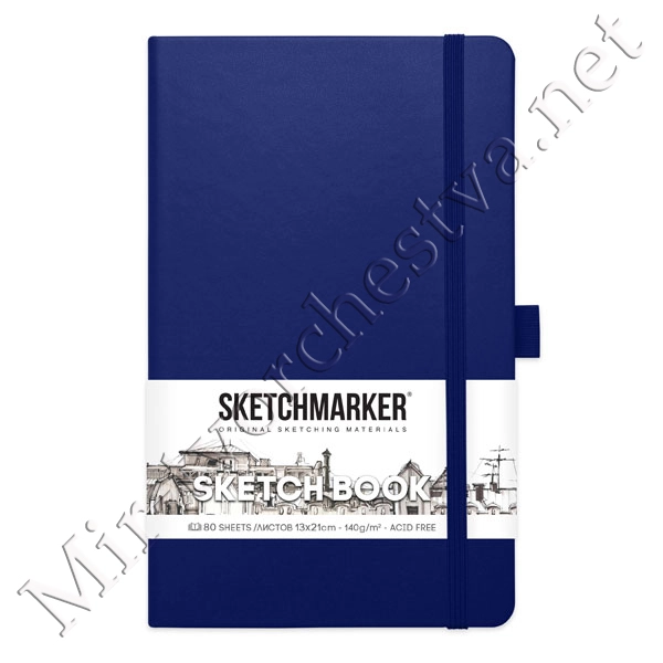 Блокнот для зарисовок 140г/кв.м 9x14см 80л твердая обложка Королевский синий, Sketchmarker