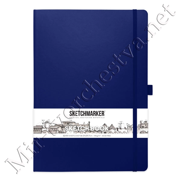 Блокнот для зарисовок 140г/кв.м 21x29.7см 80л твердая обложка Королевский синий, Sketchmarker