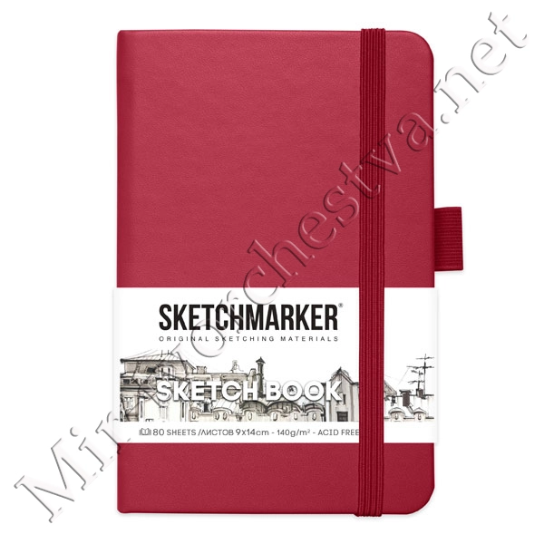 Блокнот для зарисовок 140г/кв.м 9x14см 80л твердая обложка Красный, Sketchmarker
