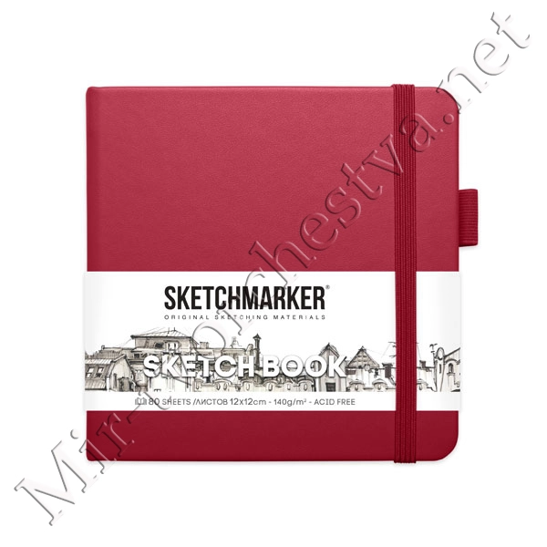 Блокнот для зарисовок 140г/кв.м 20*20cм 80л твердая обложка Красный, Sketchmarker