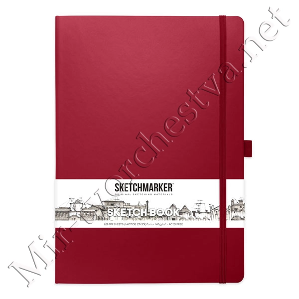 Блокнот для зарисовок 140г/кв.м 21x29.7см 80л твердая обложка Красный, Sketchmarker