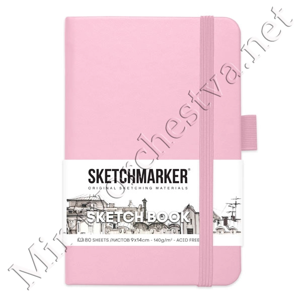 Блокнот для зарисовок 140г/кв.м 9x14см 80л твердая обложка Розовый, Sketchmarker
