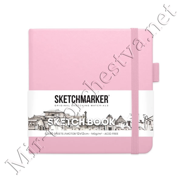 Блокнот для зарисовок 140г/кв.м 12x12см 80л твердая обложка Розовый, Sketchmarker