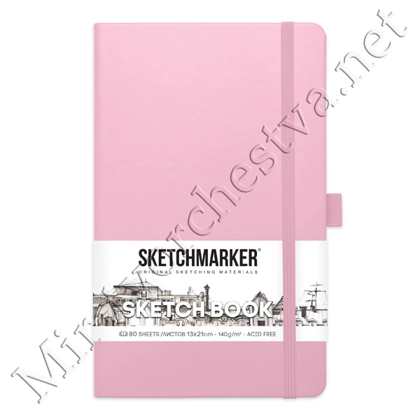 Блокнот для зарисовок 140г/кв.м 13x21см 80л твердая обложка Розовый, Sketchmarker
