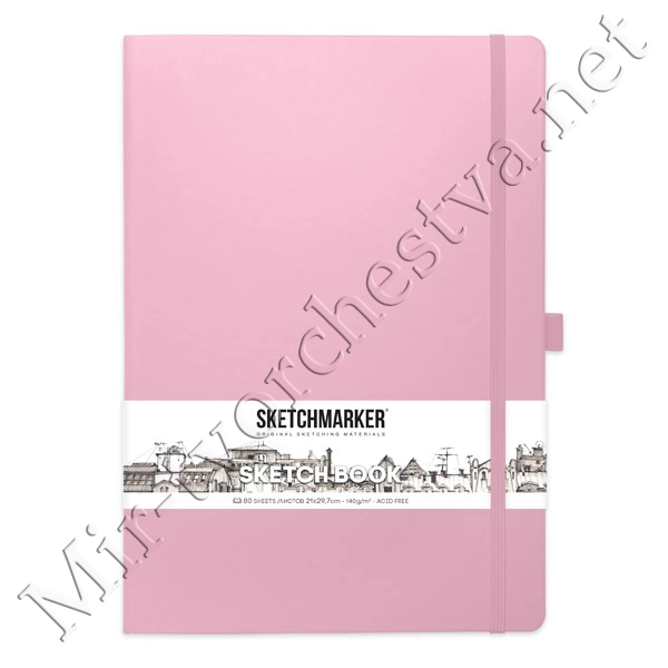 Блокнот для зарисовок 140г/кв.м 21x29.7см 80л твердая обложка Розовый, Sketchmarker