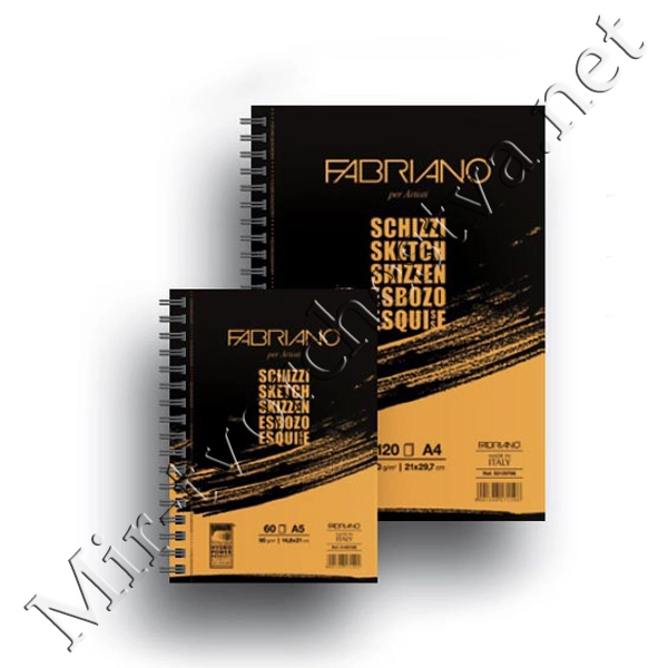 Альбом для эскизов на спирали Schizzi Sketch А4 (21х29,7см), 90г/м2, 120л спираль по короткой стороне, Fabriano