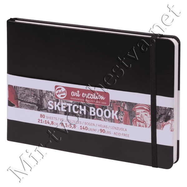 Блокнот для зарисовок 140г/кв.м 21*14.8см 80л твердая обложка черный пейзаж, Art Creation