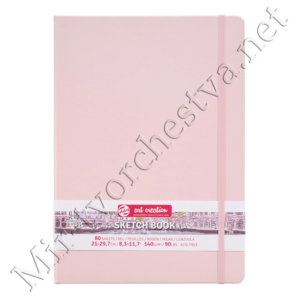 Блокнот для зарисовок 140г/кв.м 21*29.7см 80л твердая обложка розовая, Art Creation