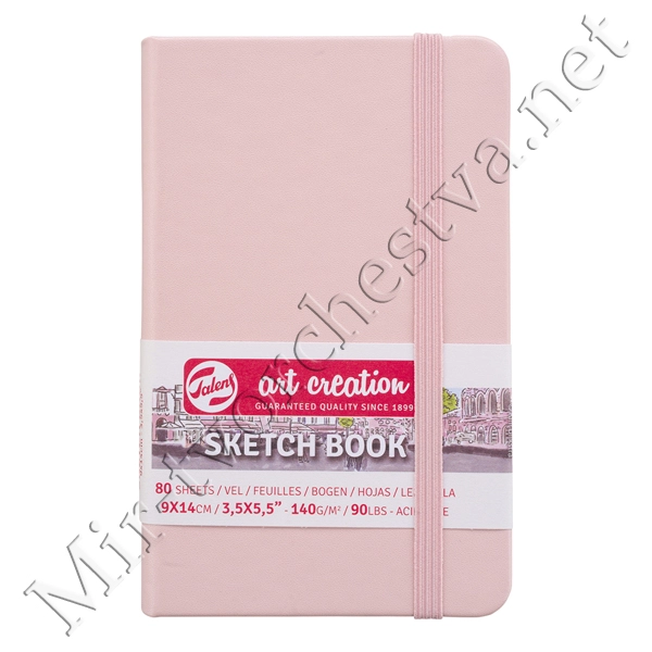 Блокнот для зарисовок 140г/кв.м 9*14см 80л твердая обложка розовая, Art Creation