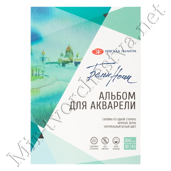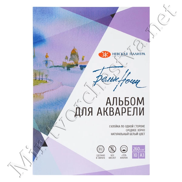 Альбом-склейка для акварели, А3, плотность 260 г/м2, 10 листов, хлопок до 70%, среднее зерно, Белые Ночи
