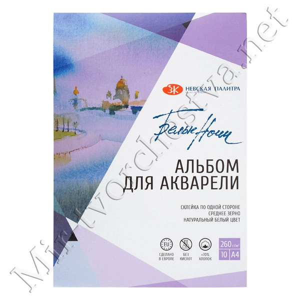 Альбом-склейка для акварели, А4, плотность 260 г/м2, 10 листов, хлопок до 70%, среднее зерно, Белые Ночи