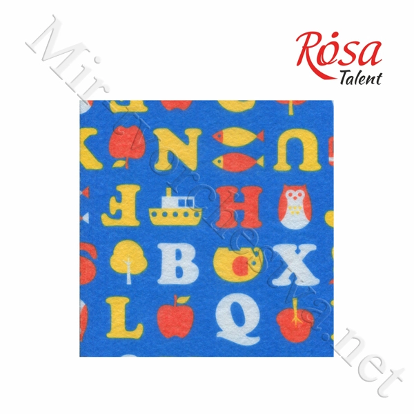 Фетр листовой (полиэстер), 21,5х28 см, принт, Буквы на синем, 180г/м2, ROSA Talent
