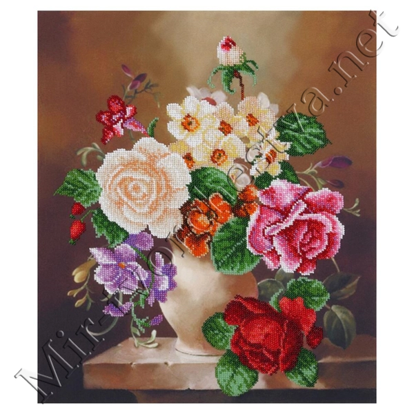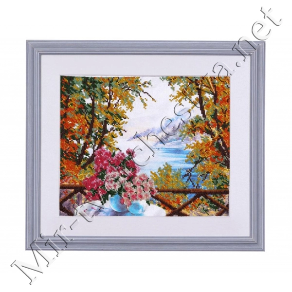 Вышивка бисером (Т-0283), Пейзаж с букетом, 23х27см