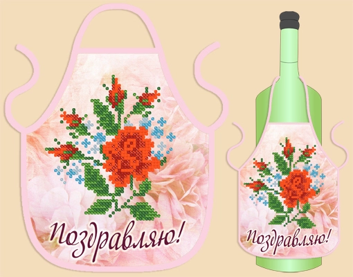 Фартук на бутылку, С 8 марта, 14х16см, ФБ-026