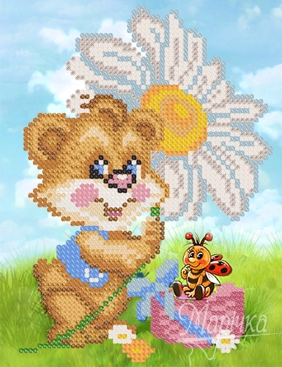 Картина, Мишка с ромашкой, 13х17см, РКП-5-024