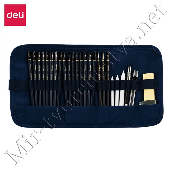Набор для скетчинга карандаши, ластики, аксессуары 27 предметов в пенале-свитке, Finenolo