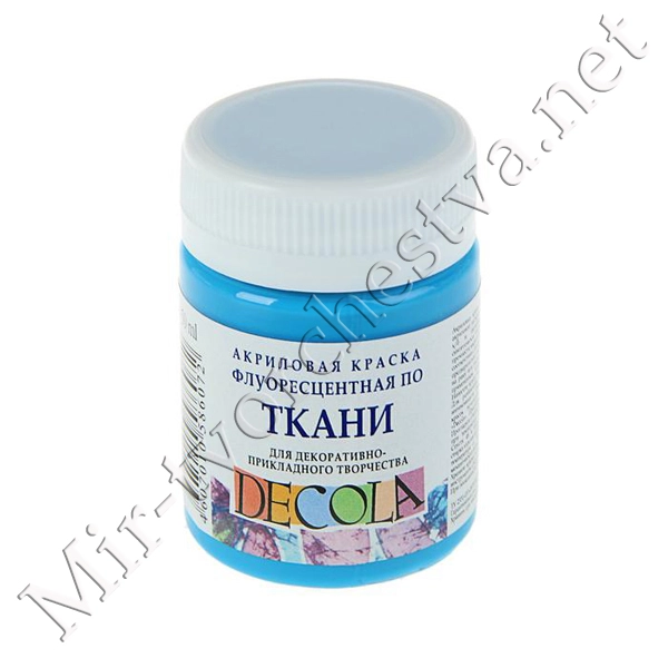 Краска акриловая по ткани, Голубая, флуоресцентный, 50мл, Decola