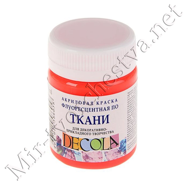 Краска акриловая по ткани, Красная, флуоресцентный, 50мл, Decola