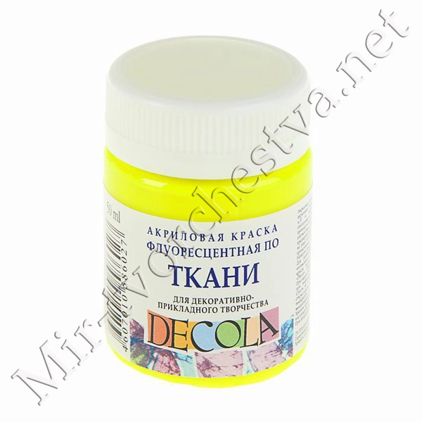Краска акриловая по ткани, Лимонная, флуоресцентный, 50мл, Decola