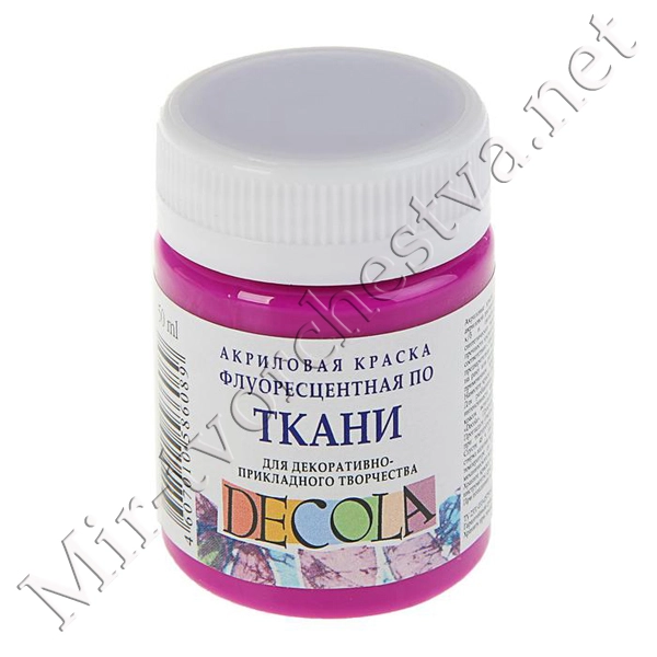 Краска акриловая по ткани, Розовая, флуоресцентный, 50мл, Decola