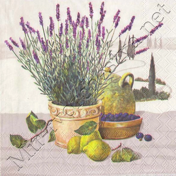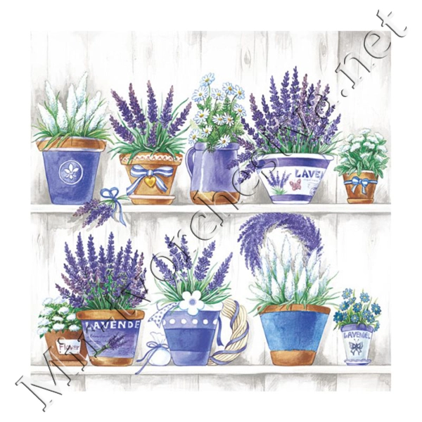 Декупажная салфетка "Лаванда на полках", 33*33 см, 18,5 г/м2, Abiente