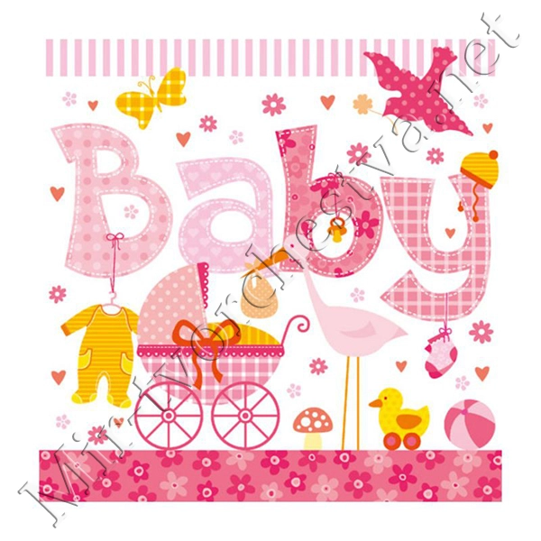 Декупажная салфетка "Baby", розовые, 33*33 см, 18,5 г/м2, Abiente