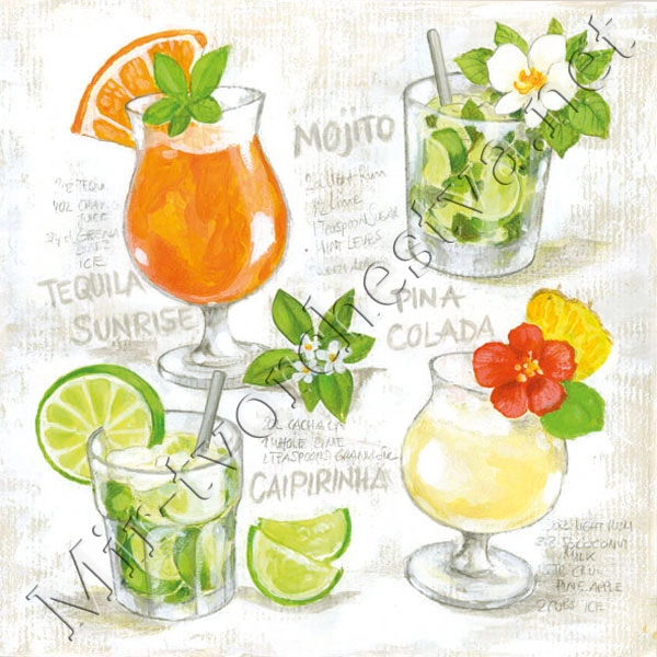 Декупажная салфетка "4 Коктейля", 33*33 см, 18,5 г/м2, Ambiente
