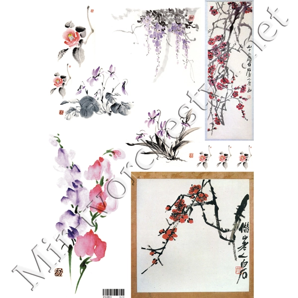 Декупажная карта 29,5х45 "Цветы в китайском стиле"