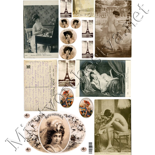 Декупажная карта 29,5х42 "Поцелуи, вино и сладости (ретроплакаты)"